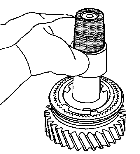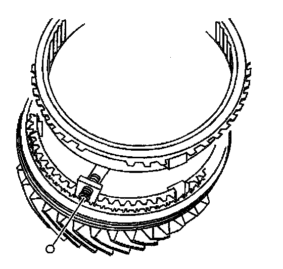 Important: In order to prevent the springs and balls from jumping out of position, install the 5th gear synchronizer blocking ring. Then move the sleeve to lock the sleeve in position.