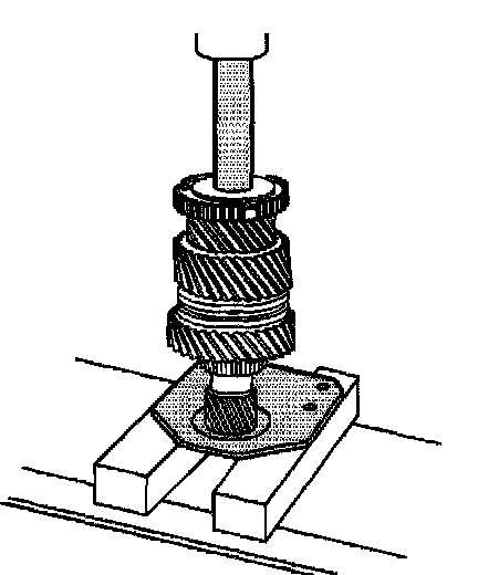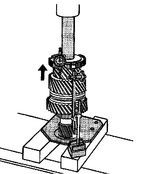 41. Using the J 26900-12 or the J 29763 with the J 26900-13 measure the 3rd gear axial clearance. Clearance should be 0.15 - 0.35 mm (0.0059 - 0.0138 inch).