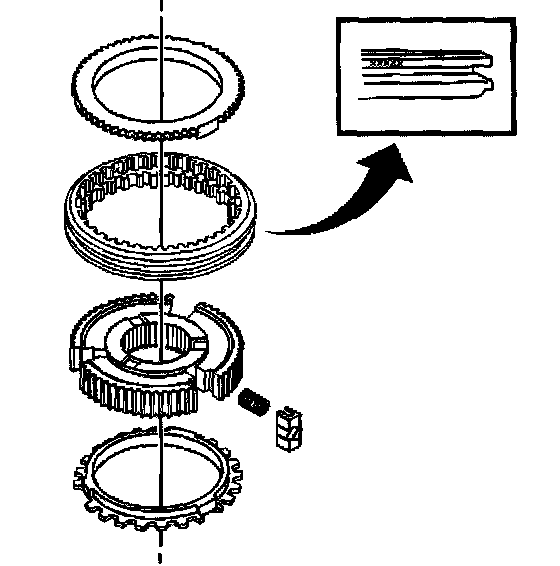 12. Lightly lubricate the synchronizer components with GM P/N 12378515.
