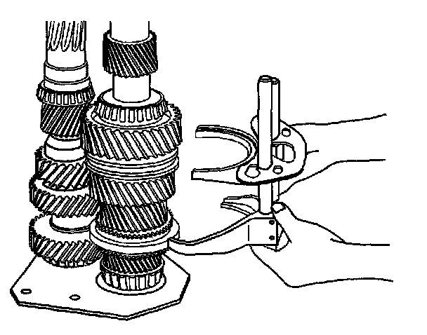 3. Position the countershaft on the J 44725. Roll the countershaft into place to merger the countershaft and main shaft gears.