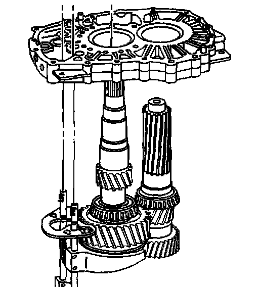 7. Install the intermediate case over the countershaft, the main shaft, 2nd/3rd shift shaft, and the 4th/5th shift shaft.
