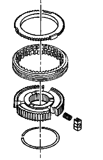 21.4. 1st/reverse gear synchronizer assembly with the hub part numbers facing up
