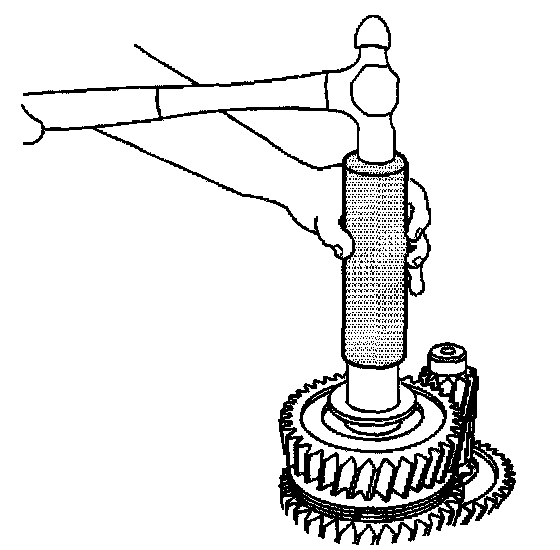 47. Shift the transmission into 5th gear in order to lock the input shaft to the mainshaft.