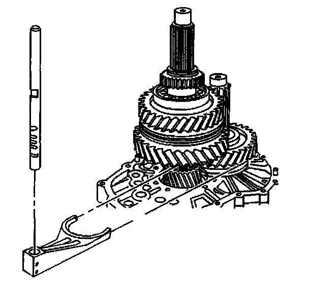 32. Install the 1st/reverse shift fork and rail.