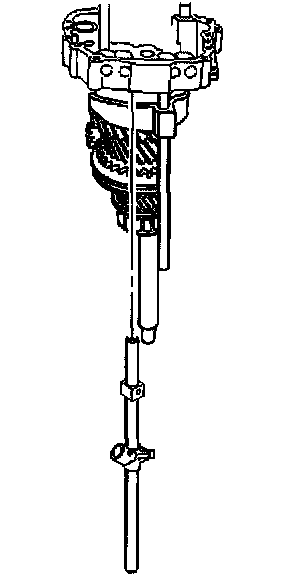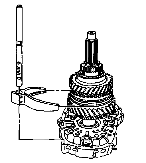54.1. Mount the J 44739 to the intermediate case using the rear case bolts. The J 44739 has three positions for locating the cross-piece. Use the center position for 4WD transmission or top position for RWD transmission.
