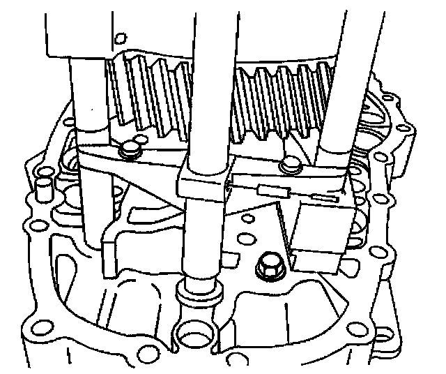 52.1. Mount the J 44739 to the intermediate case using the rear case bolts. The J 44739 has three positions for locating the cross-piece. Use the lower position for the countershaft.