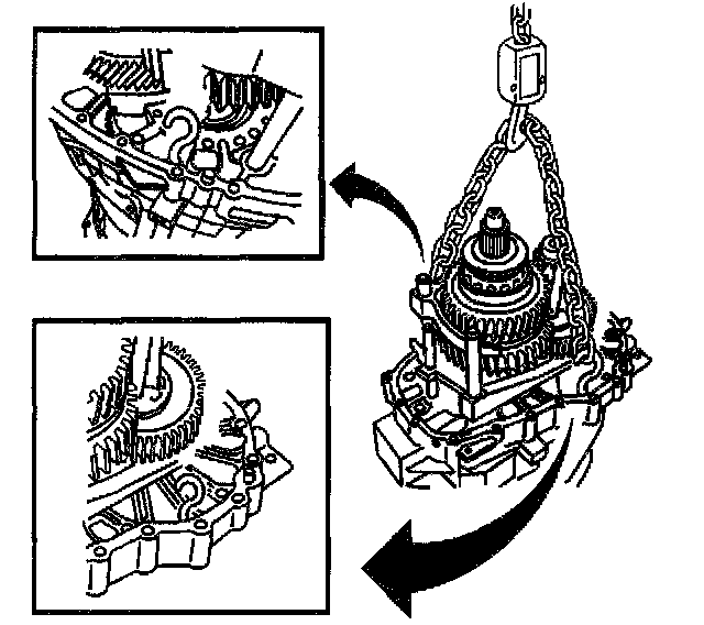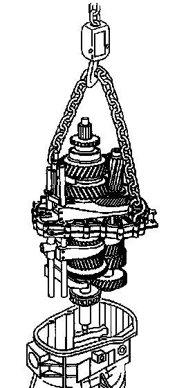 57. Using S-hooks, chain and a suitable lifting device, remove the gear assembly.
