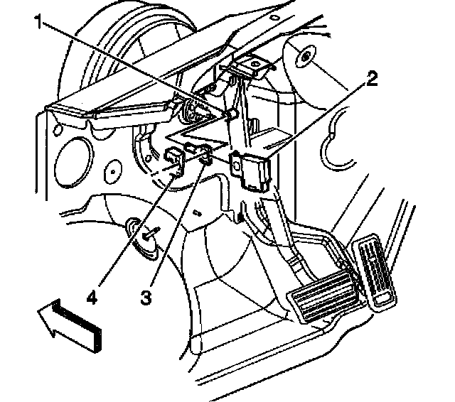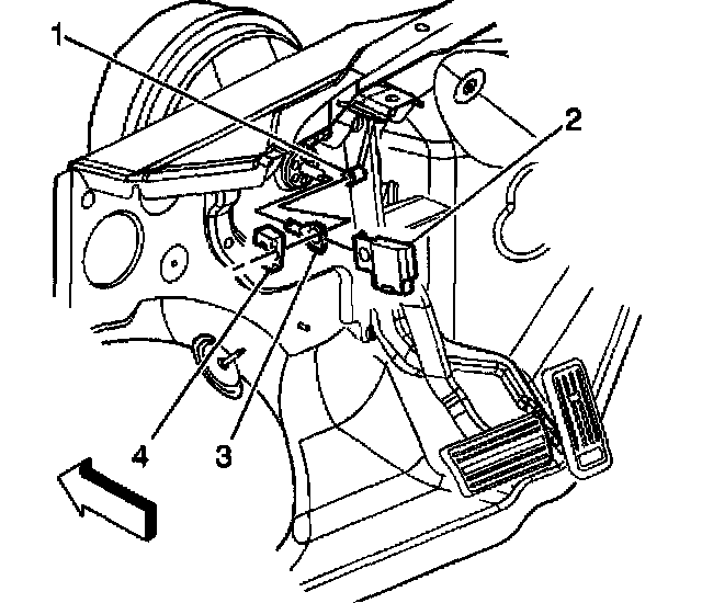 1. Disconnect the electrical connection from the stoplamp switch (2).