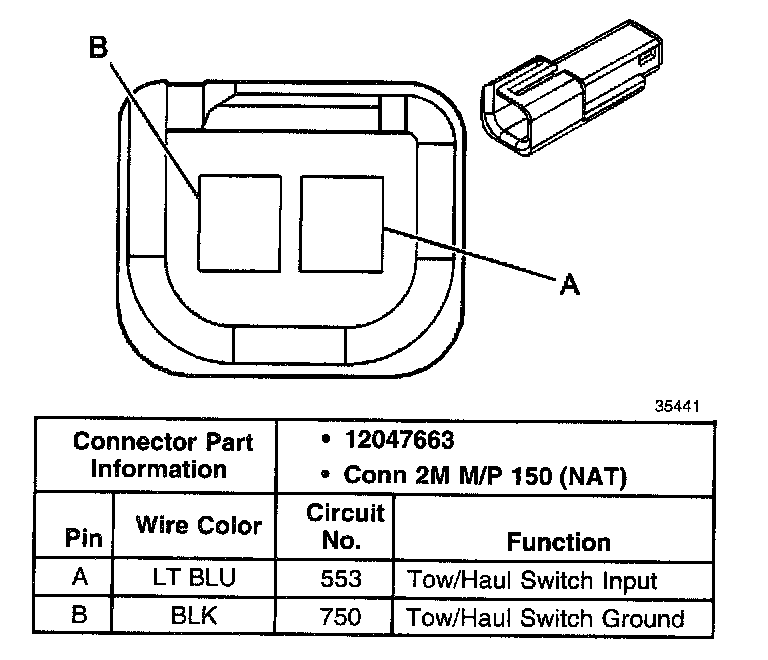 Tow/Haul Switch Connector, Column Wiring Harness Side