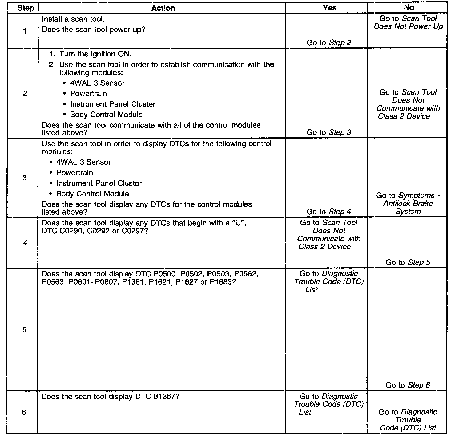 The ABS Diagnostic System Check is an organized approach to identifying problems associated with the ABS. This must be the starting point for any ABS related concern and will direct you to the next logical step in diagnosing a malfunction. Most system malfunctions are linked to faulty wiring, connections and occasionally, to components. Understanding the ABS system and using the diagnostic tables correctly will reduce diagnostic time and prevent unnecessary parts replacement.