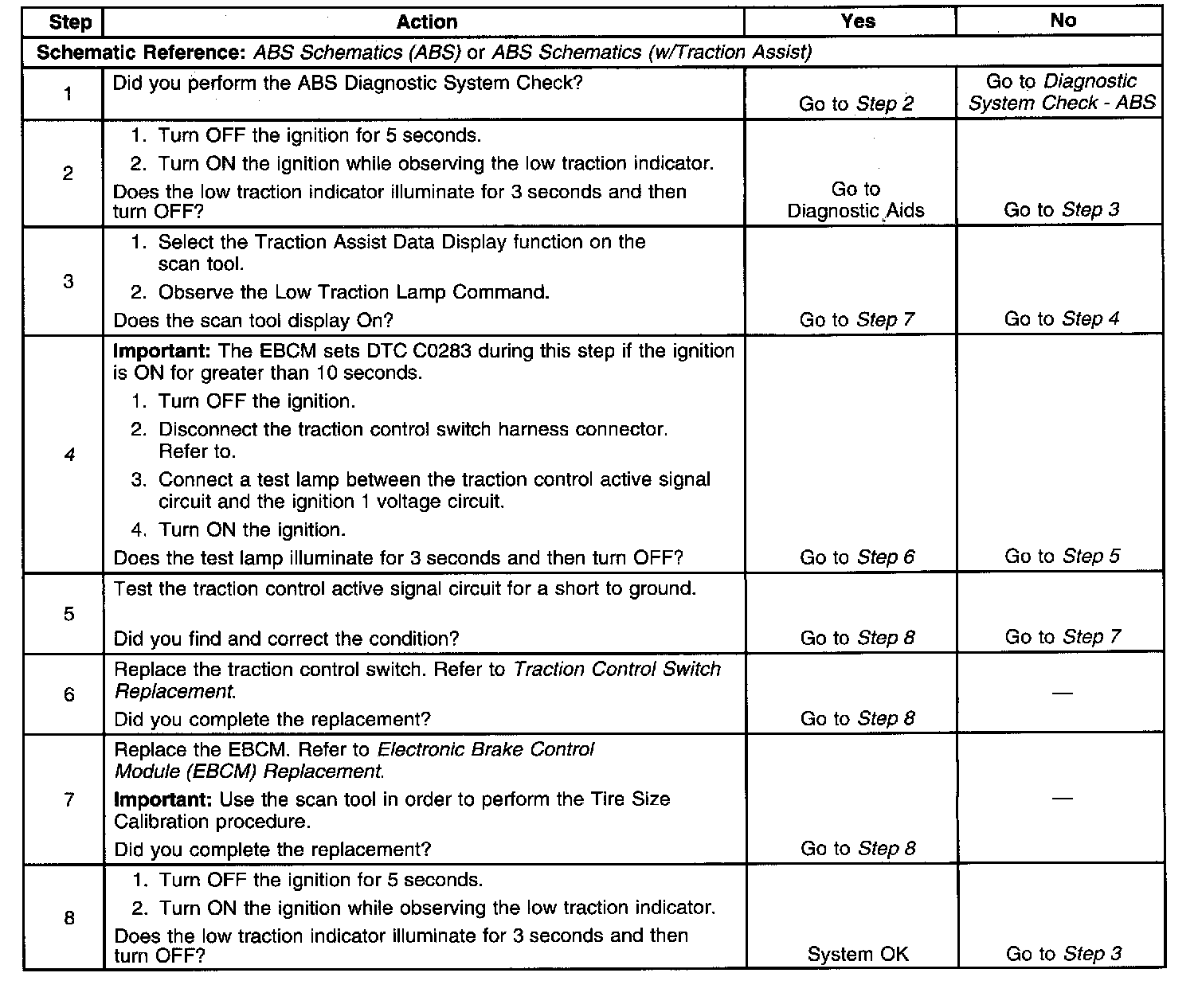 4. This step tests for proper operation of the low traction indicator circuitry.