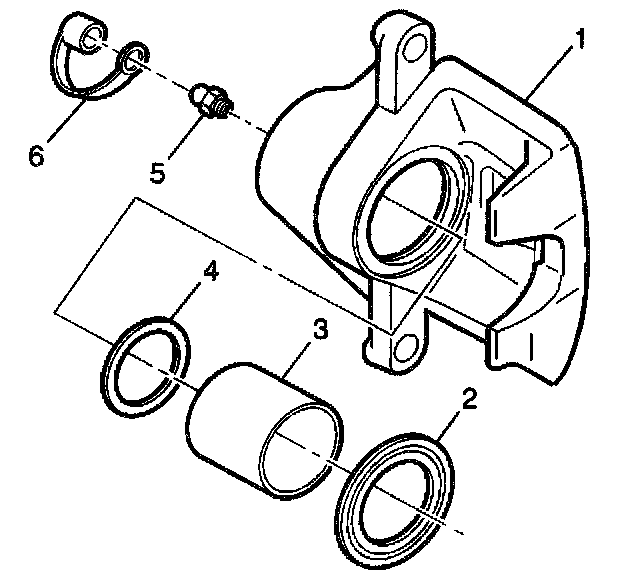 1. Inspect the brake caliper housing (1) for cracks, excessive wear, and/or damage. If any of these conditions are present, the brake caliper requires replacement.