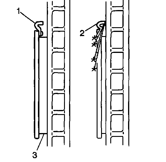 ^ Inspect both edges of the disc brake pad friction surfaces (3). The highest rate of wear normally occurs at the trailing edge of the disc brake pads.
