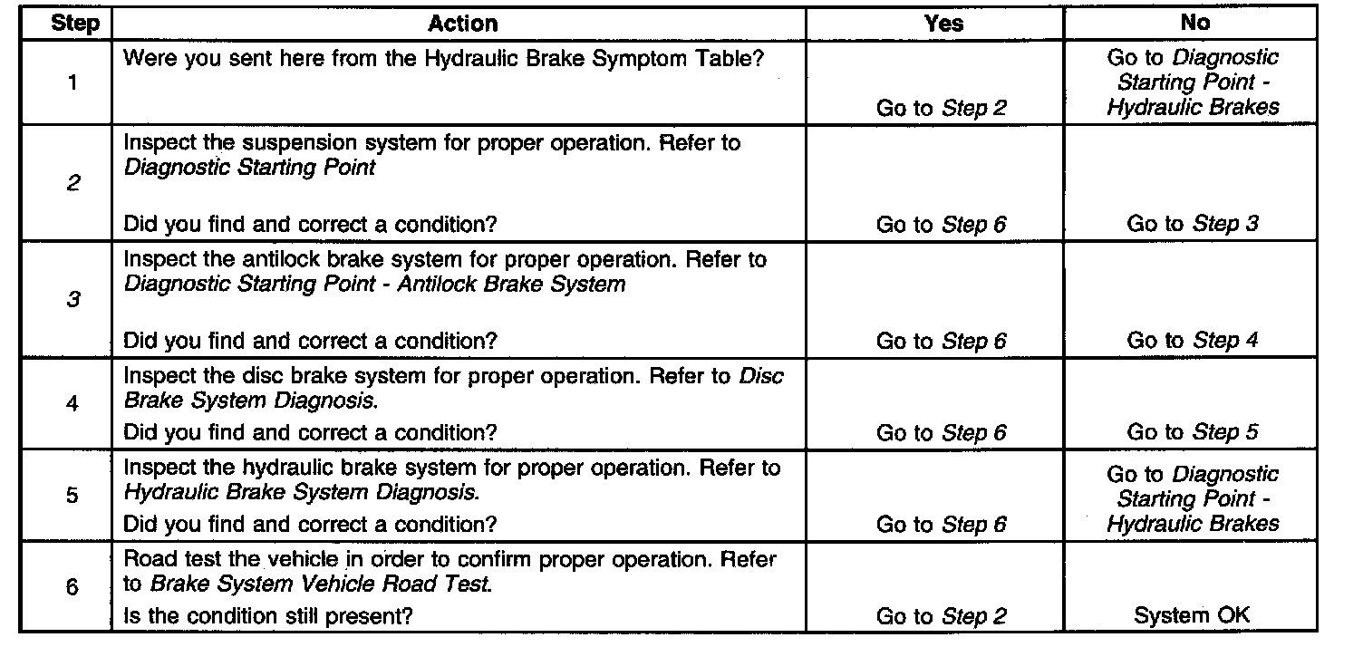 2. Suspension components that are not operating properly may cause a disturbance to the vehicle during application of the brake system.