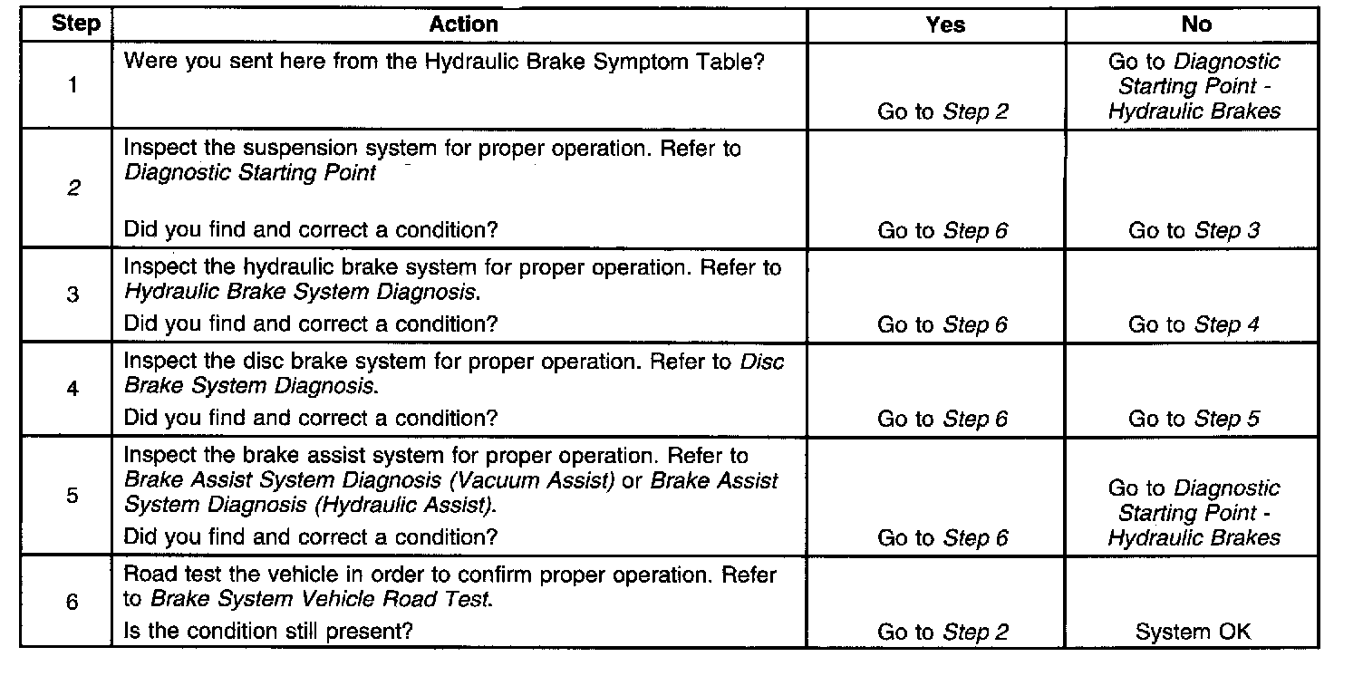 2. Suspension components that are not operating properly may cause a disturbance to the vehicle during application of the brake system.