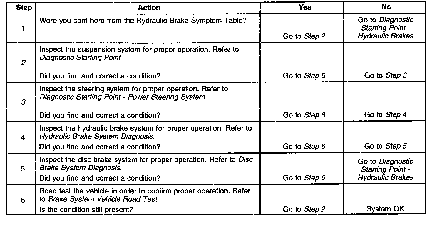 3. Steering components that are not operating properly may cause a disturbance to the vehicle during application of the brake system.