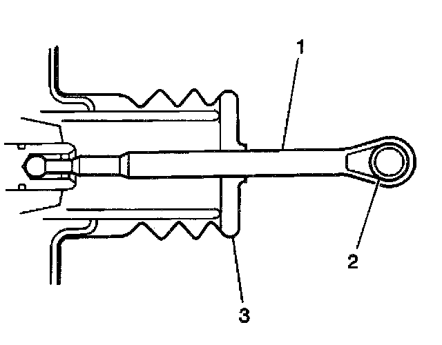 3. Reposition the pedal pushrod boot (3) toward the front of the vehicle to expose as much of the pedal pushrod (1) as possible.