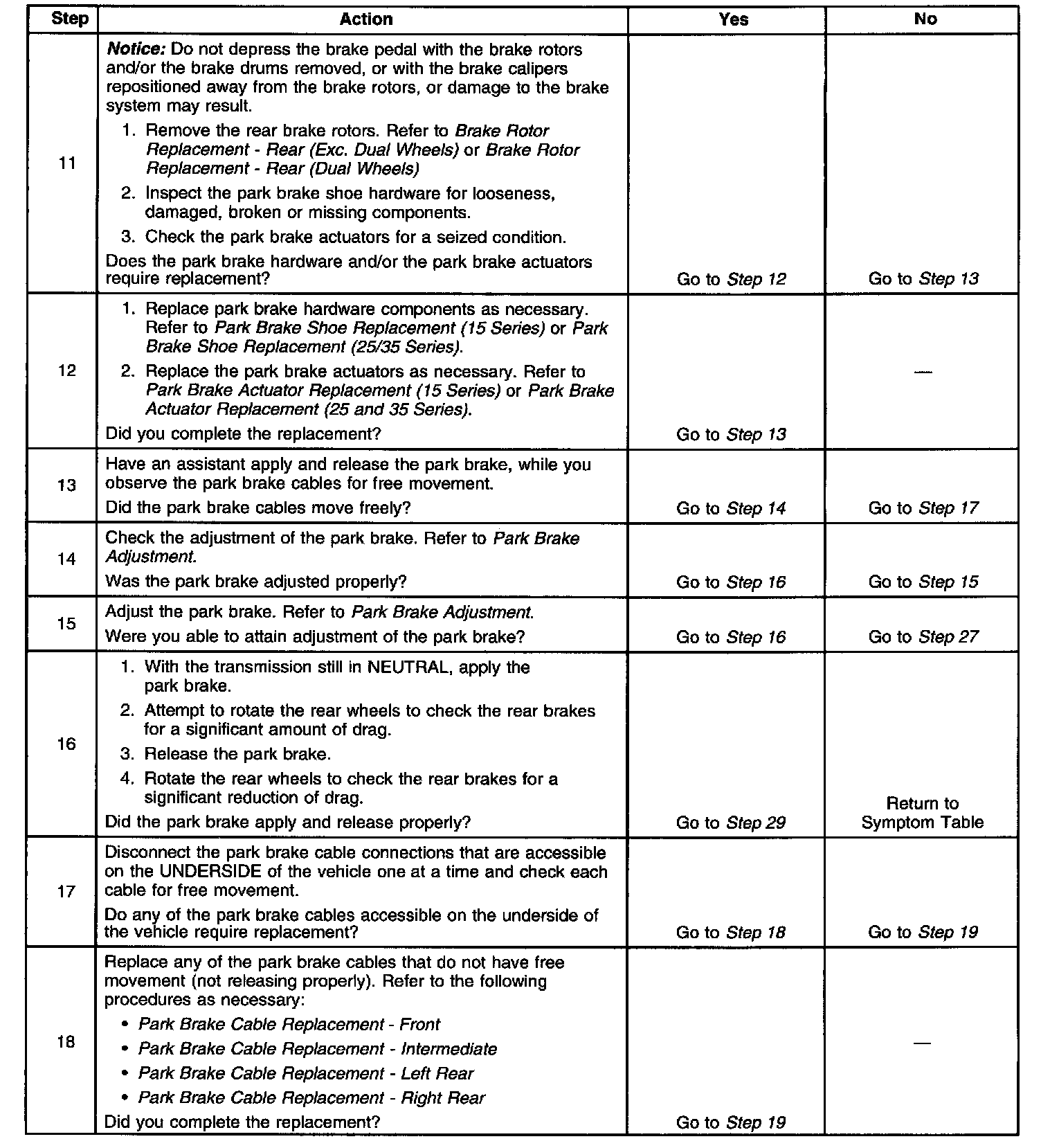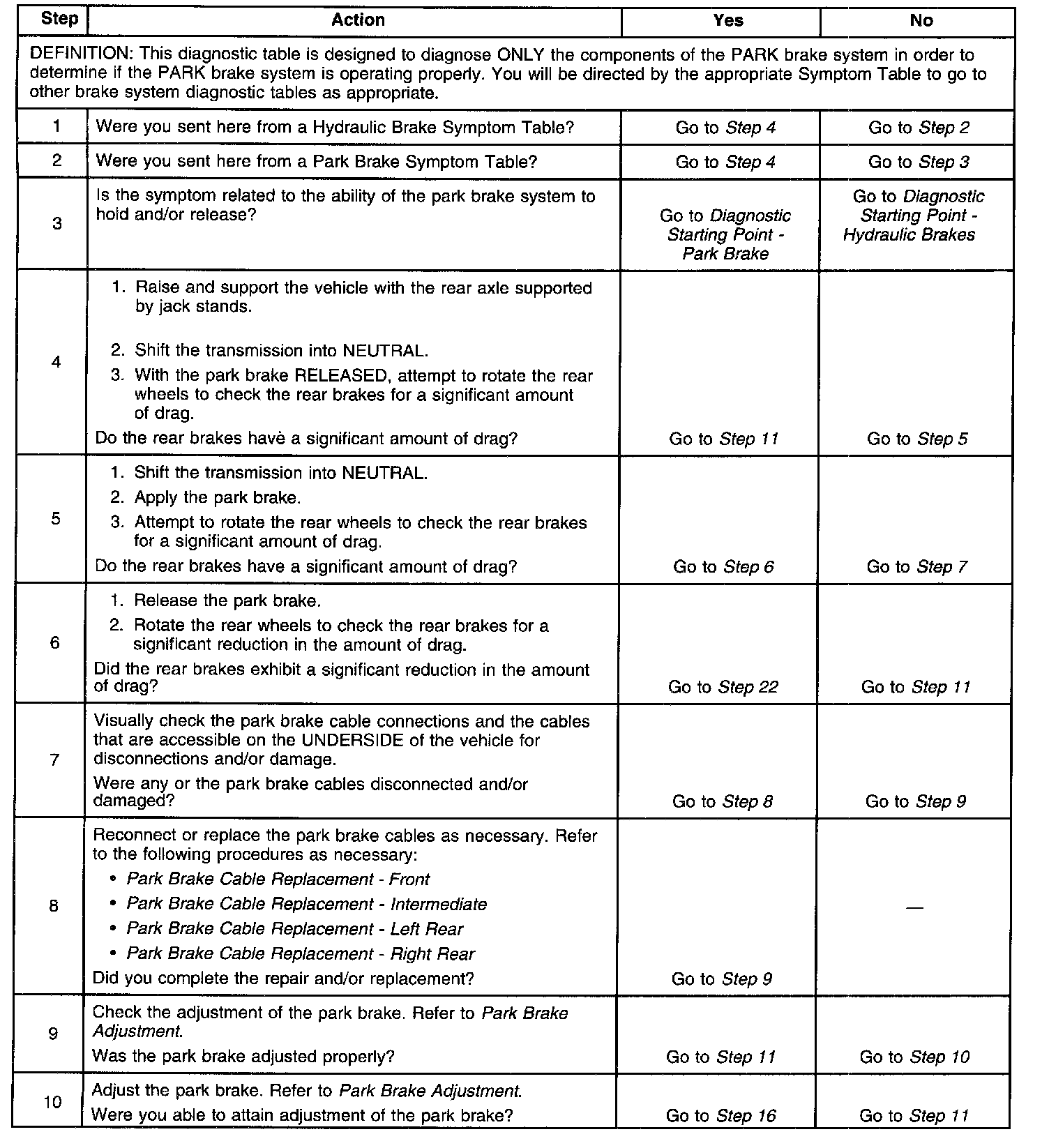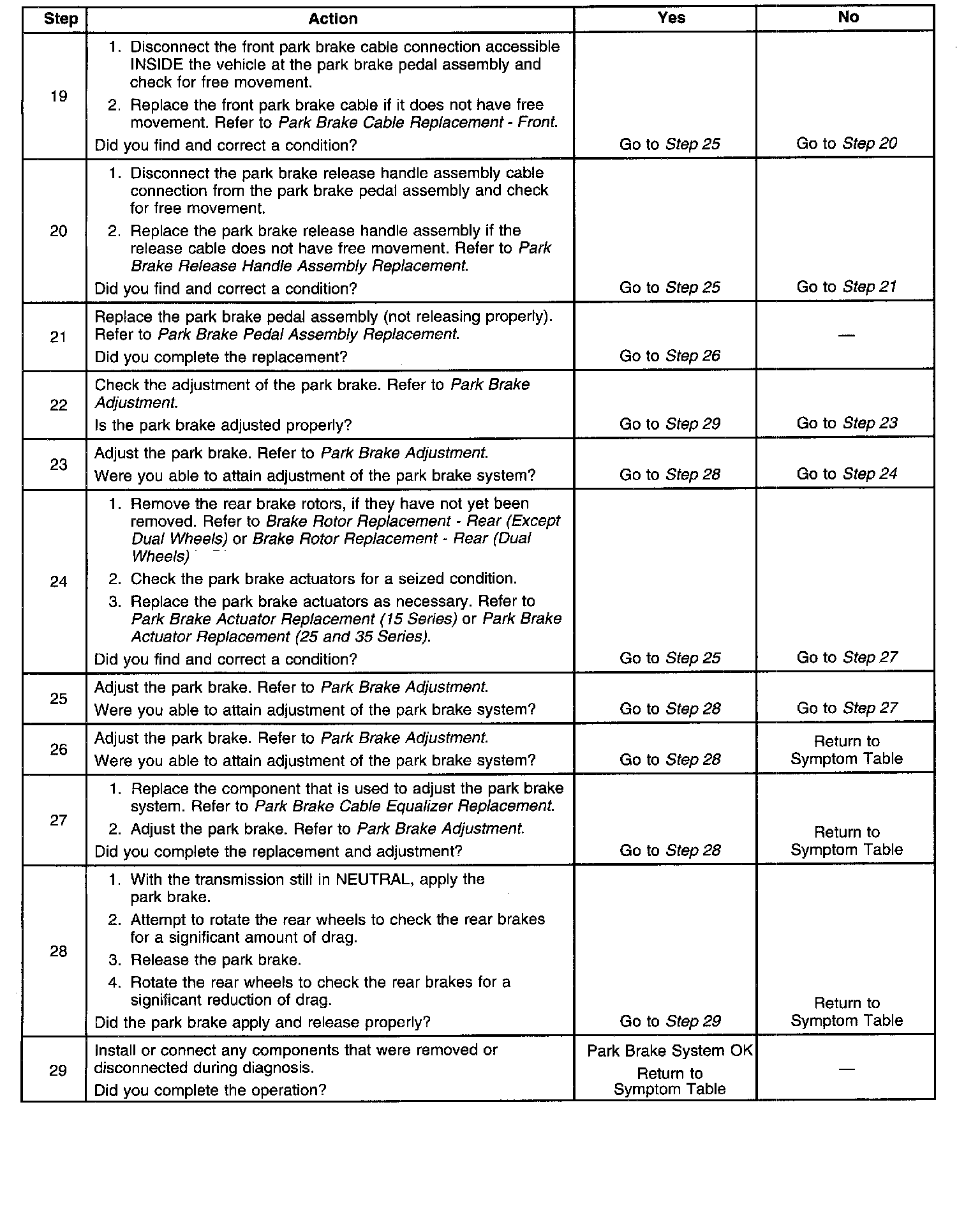 Park Brake System Diagnosis