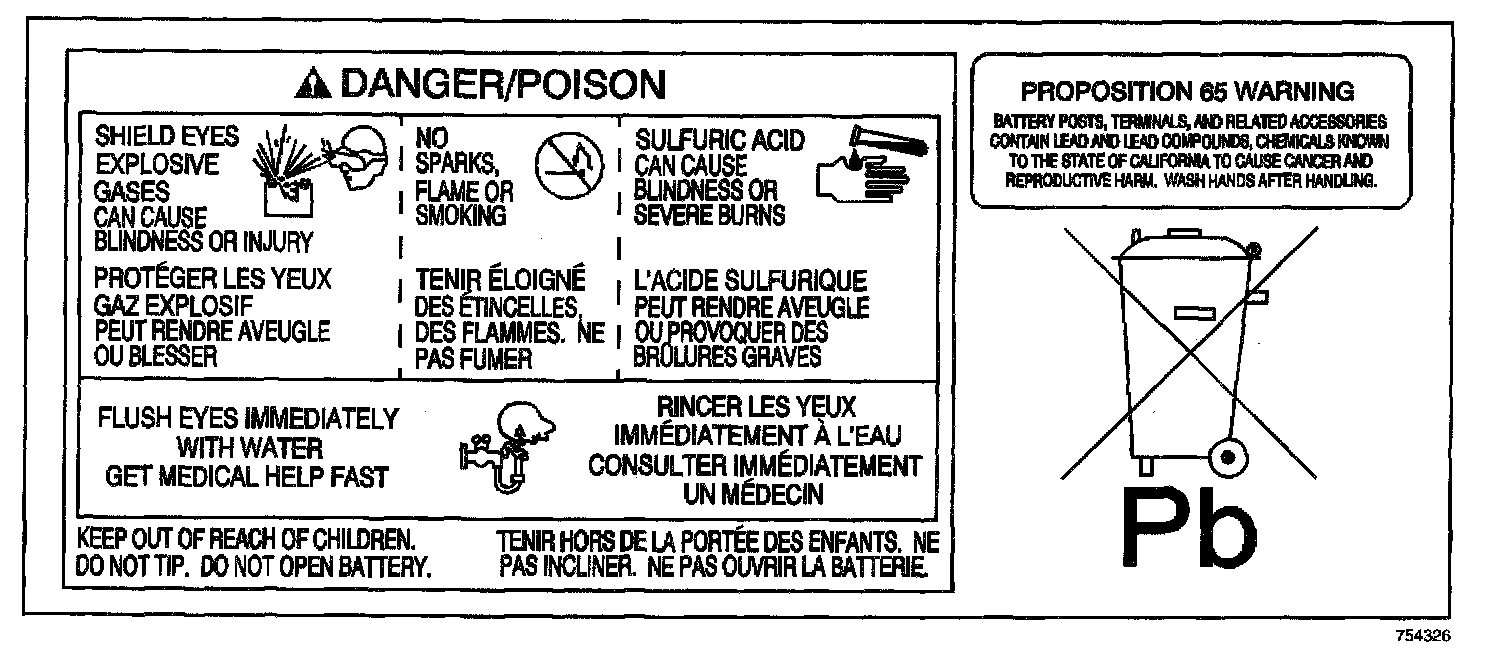 - Do not allow the battery electrolyte to contact the eyes or the skin. Flush immediately and thoroughly any contacted areas with water and get medical help.
