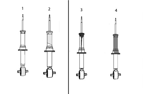 Replace shock absorbers displaying conditions 3 and 4 levels of leaks.