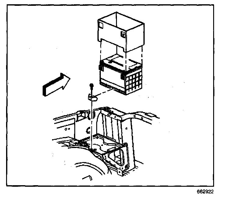 5. Remove the battery hold down retainer bolt and retainer.
