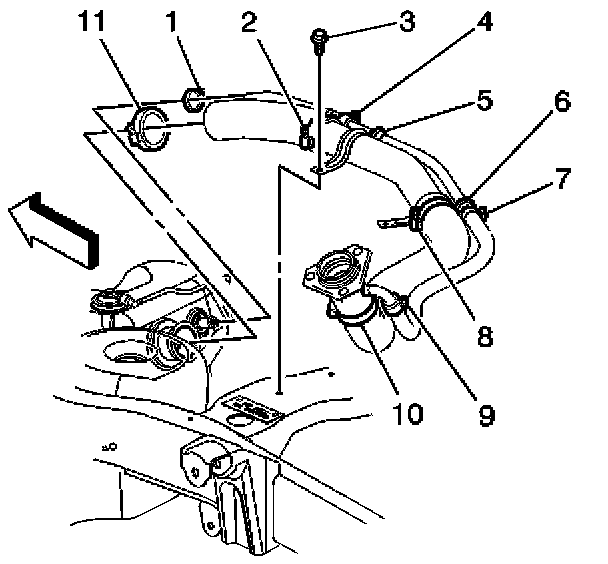 11. Loosen the vent hose clamp (4).