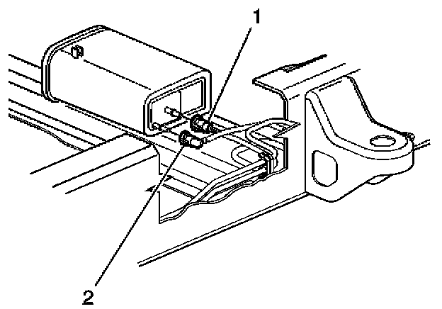 18. Disconnect the chassis fuel pipes (2) at the fuel tank pipes (1).