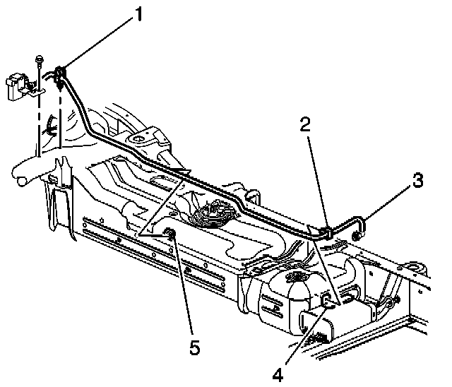 16. Disconnect the vent valve pipe (2) at the EVAP canister bracket.