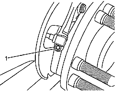 9. Remove the bolt (1) that attaches the wheel speed sensor to the bearing hub.