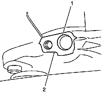 17. Using a wire brush, sandpaper, emery cloth, scotch brite, or equivalent, thoroughly clean the wheel speed sensor mounting surface (2) on the bearing hub to remove any rust of corrosion.