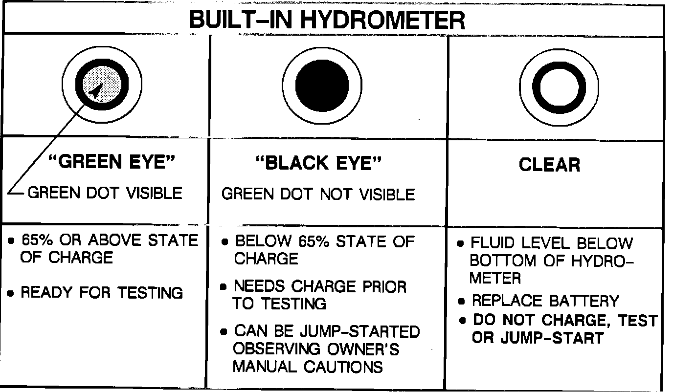 Look straight down into the built-in hydrometer to observe its reading, clean and use a flashlight if necessary, and tap lightly on top of the hydrometer to dislodge any trapped air bubbles that might prevent a correct reading. Refer to Figure 3.
