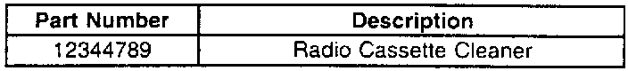 When the CLN message appears on the audio system, it indicates that the cassette tape player requires cleaning. Customers should follow the listed instructions. The recommended cleaning method for the remote cassette player is to use a scrubbing action, non-abrasive cleaning cassette, GM P/N 12344789. The cleaning cassette scrubs the tape head as the hubs of the cleaner cassette turn.