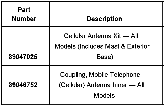 Replacement parts for the OnStar(R) system cellular antenna are available as follows: