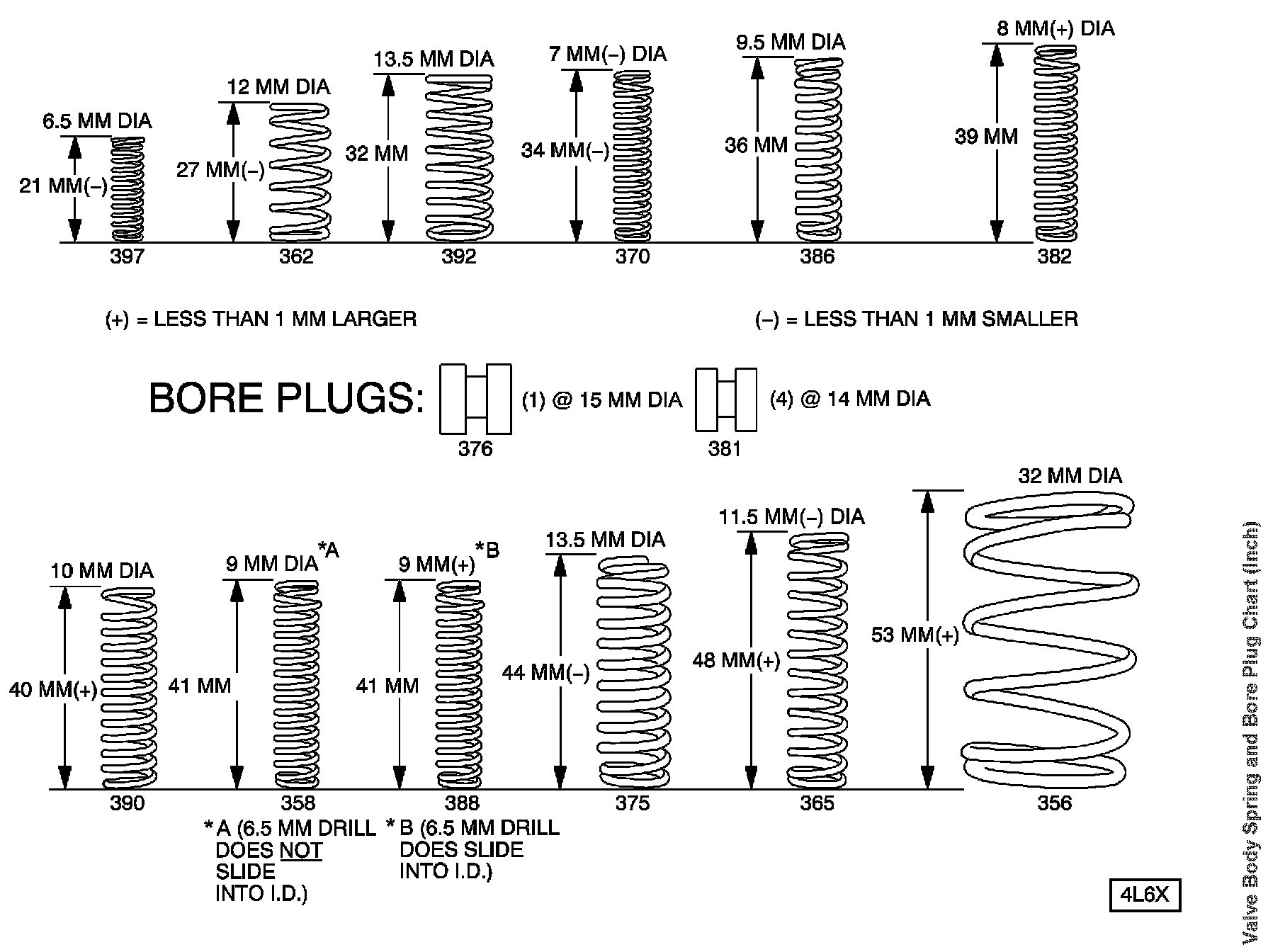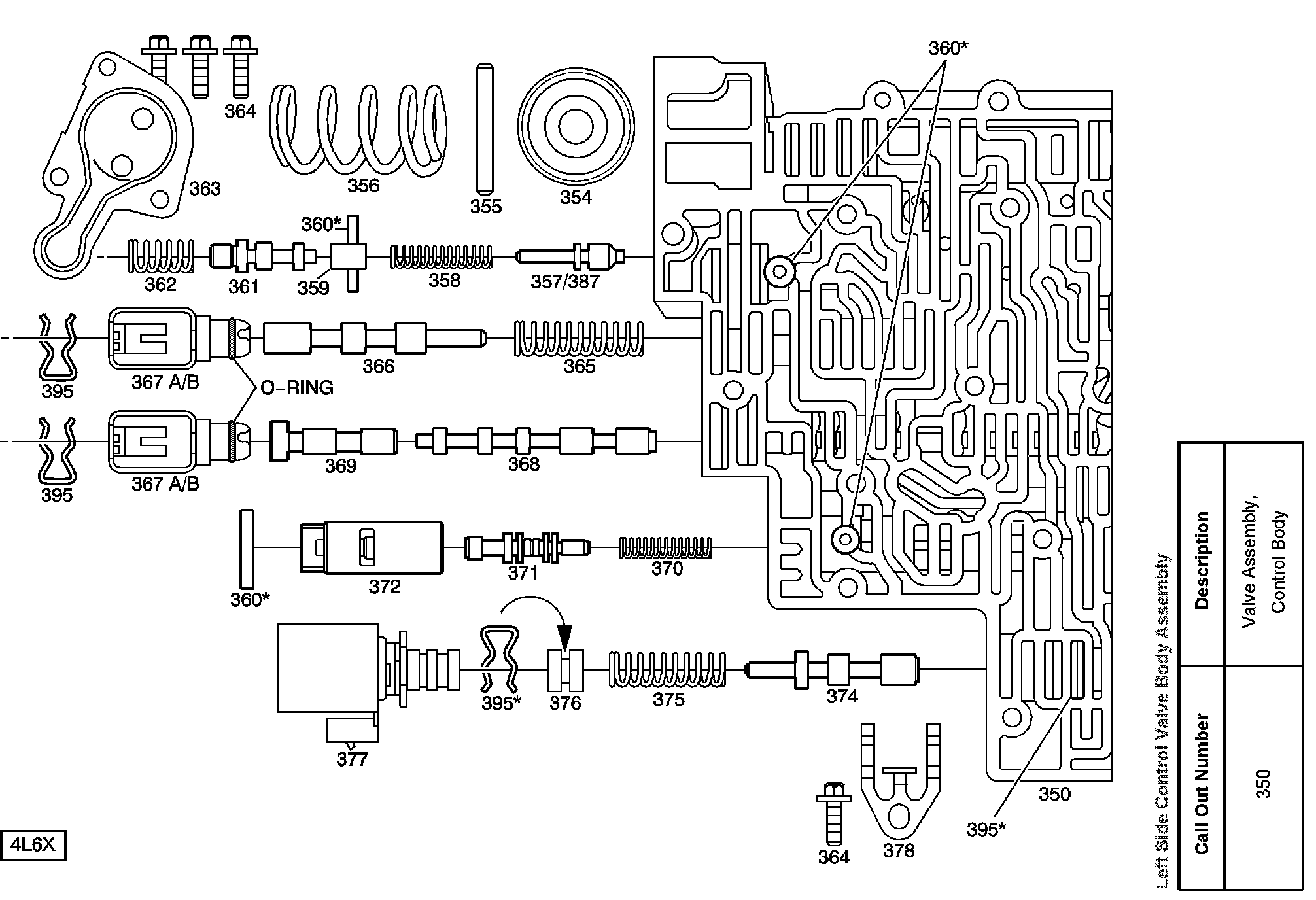 If the valve body has been contaminated with debris from another transmission component failure, then disassemble all bores for complete cleaning of all valve body components. If possible, keep individual bore parts separated for ease of reassembly. Use the illustrations in this bulletin for a positive identification and location of individual parts: