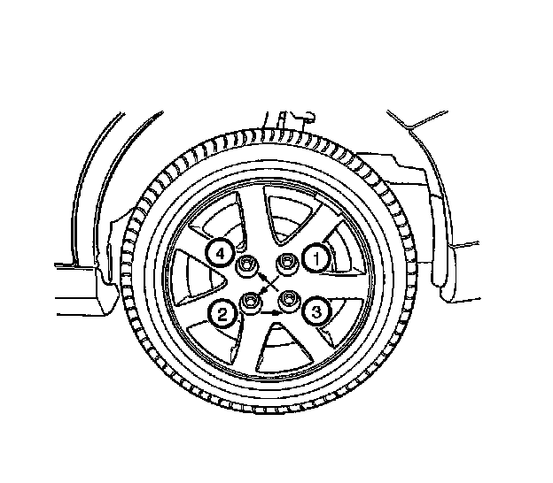 Improper wheel nut tightening can lead to brake pulsation and rotor damage. In order to avoid additional brake repairs, evenly tighten the wheel nuts to the proper torque specification as shown for each vehicle in SI. Always observe the proper wheel nut tightening sequence as shown below in order to avoid trapping the wheel on the wheel stud threads or clamping the wheel slightly off center resulting in vibration.