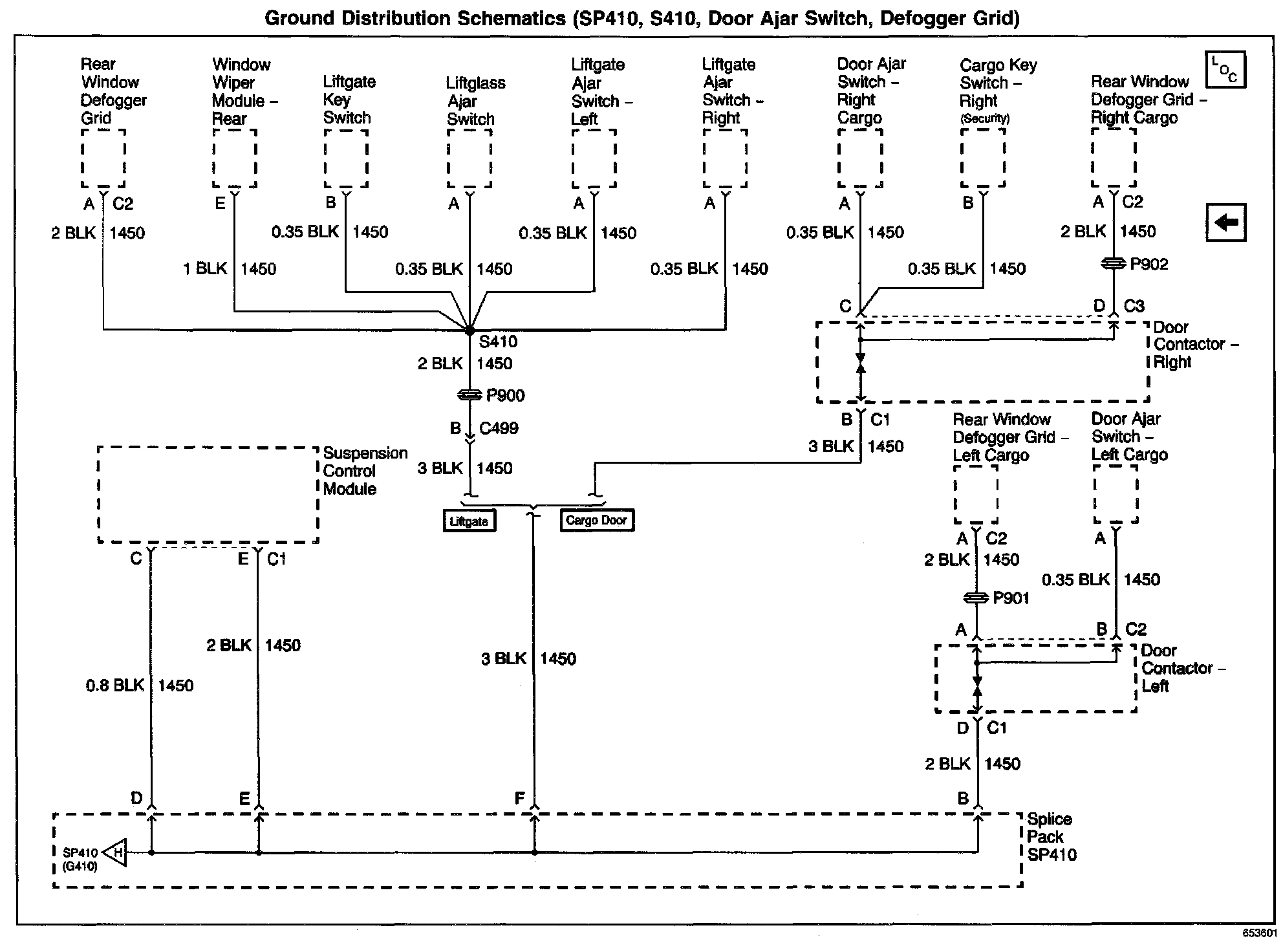 Ground Distribution Schematics: SP410, S410, Door Ajar Switch, Defogger Grid: