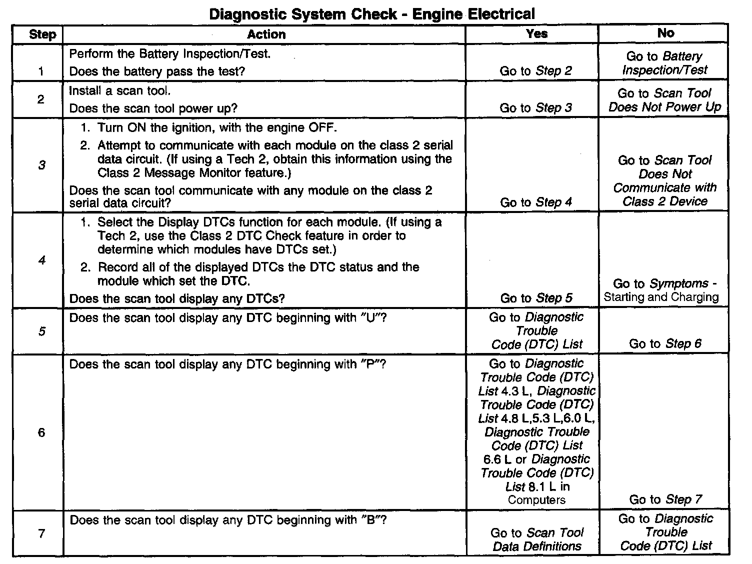 The number(s) below refer to the step number(s) on the diagnostic table.