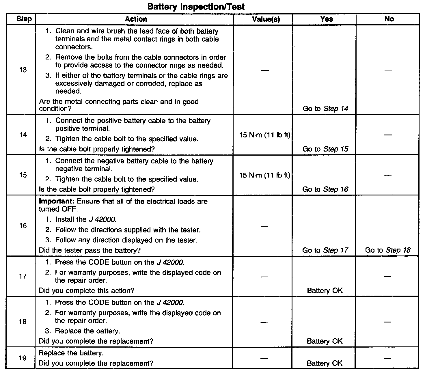 - The battery test using the J42000 requires correct connections to the battery terminals. A failure to obtain the correct connections during the test may result in a failed test on a good battery.