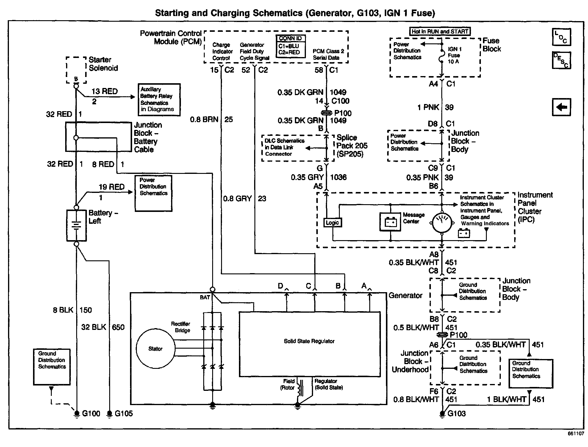 Starting And Charging Schematics: Generator, G103, IGN 1 Fuse: