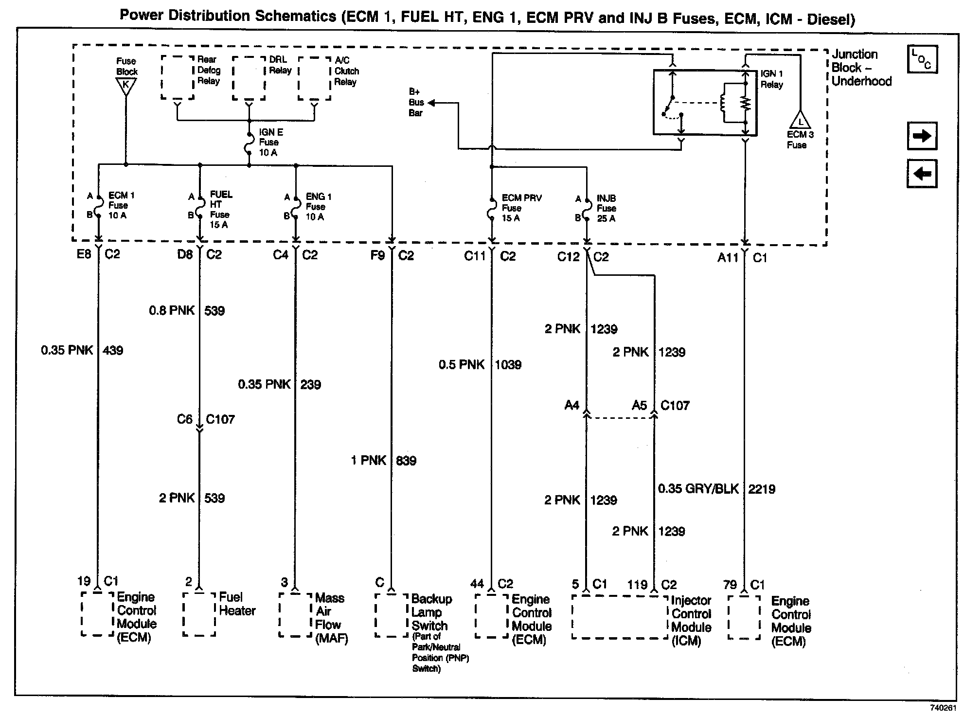 Power Distribution Schematics: ECM 1, FUEL HT, ENG 1, ECM PRV And INJ B Fuses, ECM, ICM - Diesel: