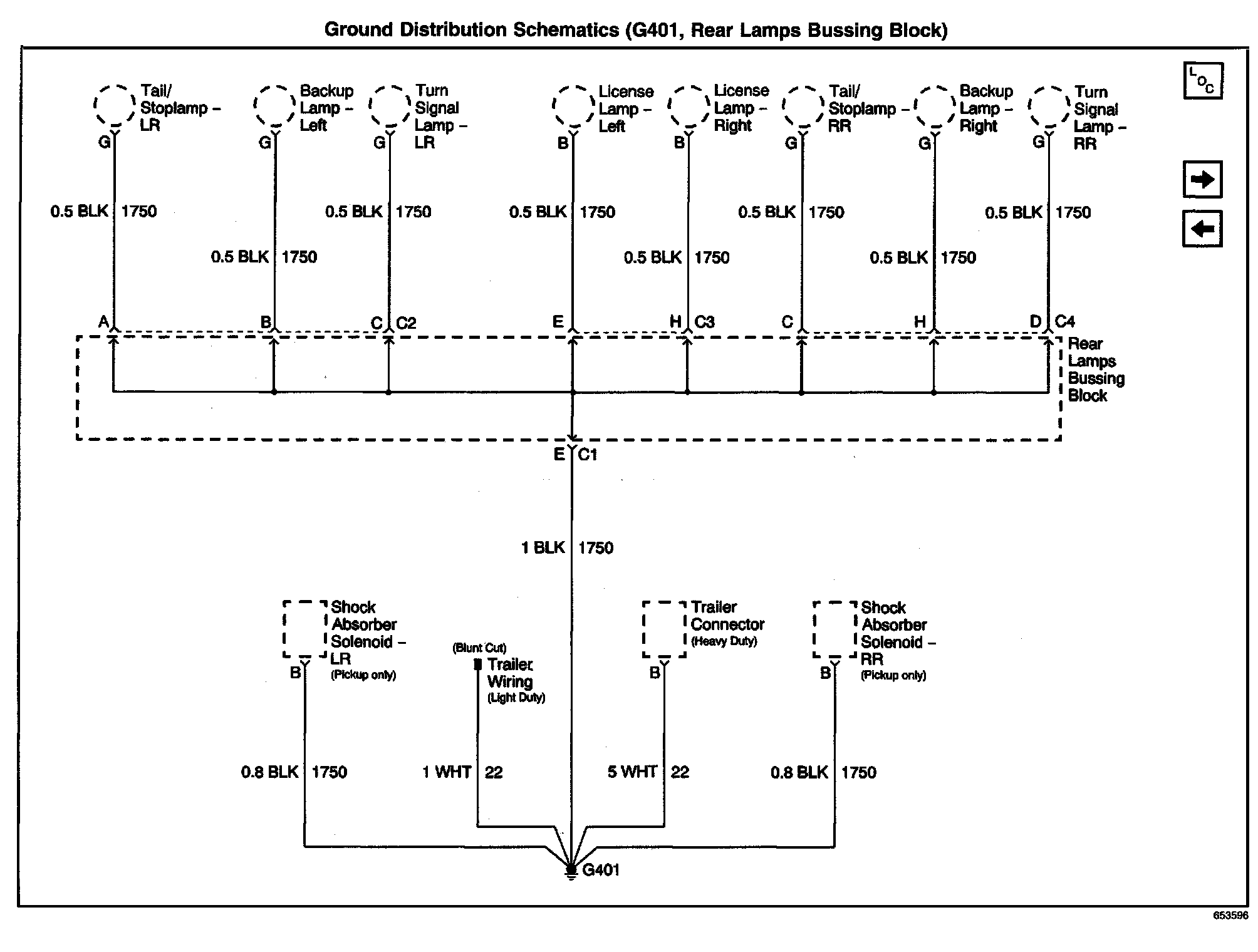 Ground Distribution Schematics: G401, Rear Lamps Bussing Block: