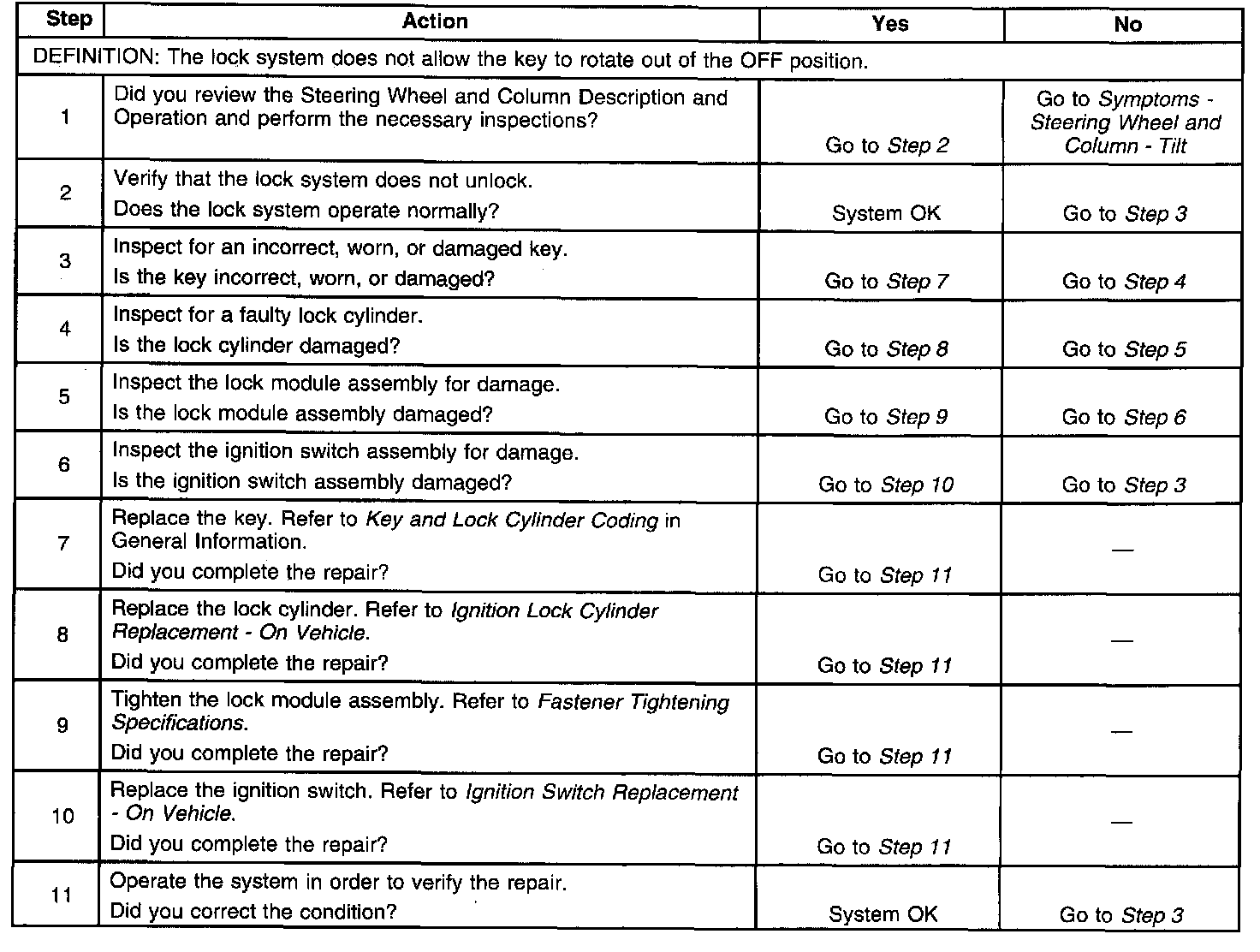 Lock System Does Not Unlock - Tilt Column
