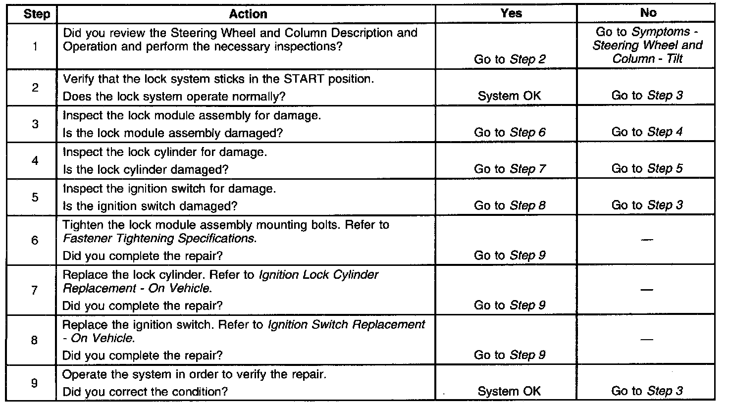 Lock System Sticks In Start - Tilt Column