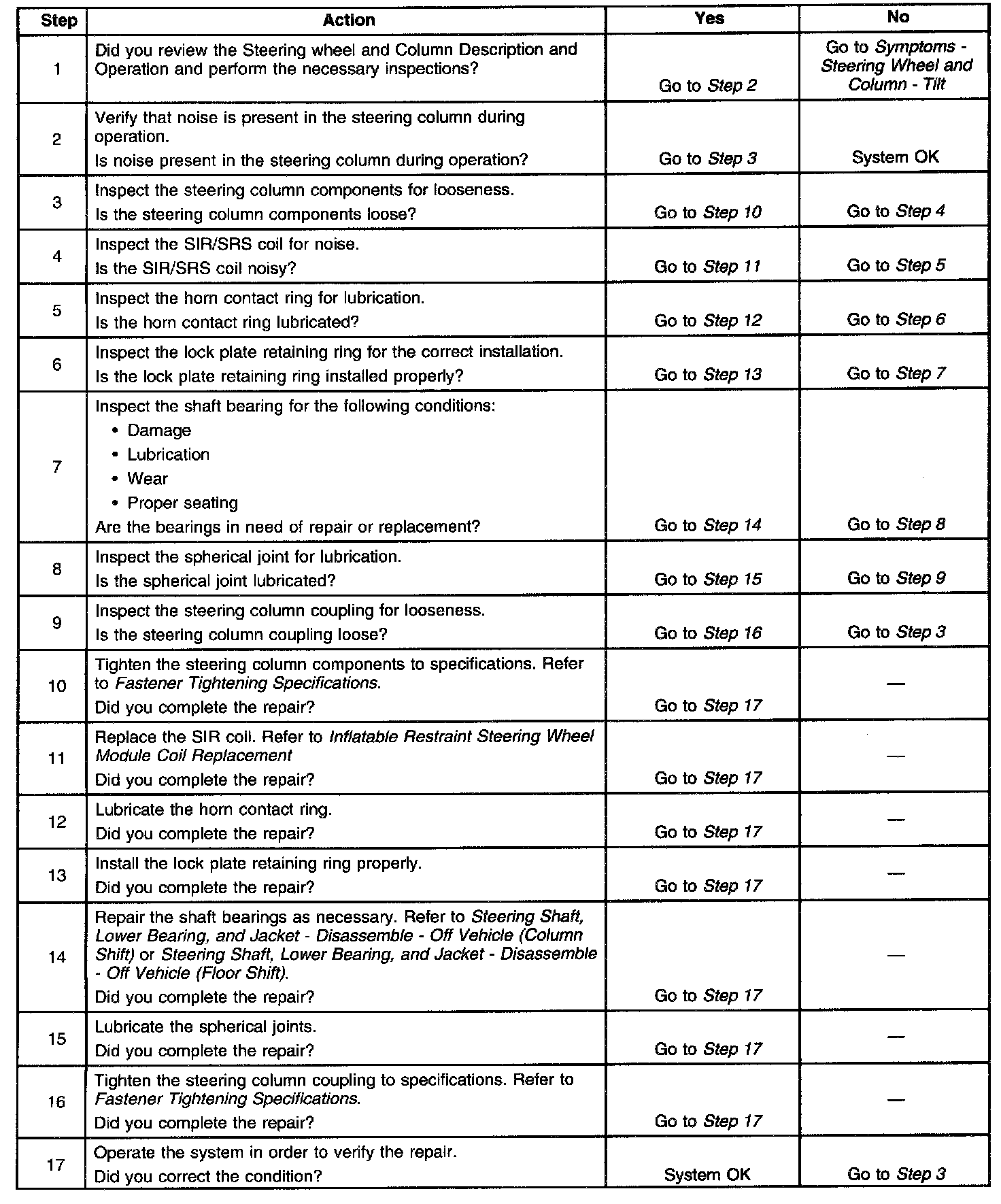 Noise In Steering Column - Tilt Column