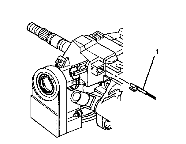 9. Press the locking tab on the end of the park lock cable assembly (1) into the slot in the electronic lock module assembly.