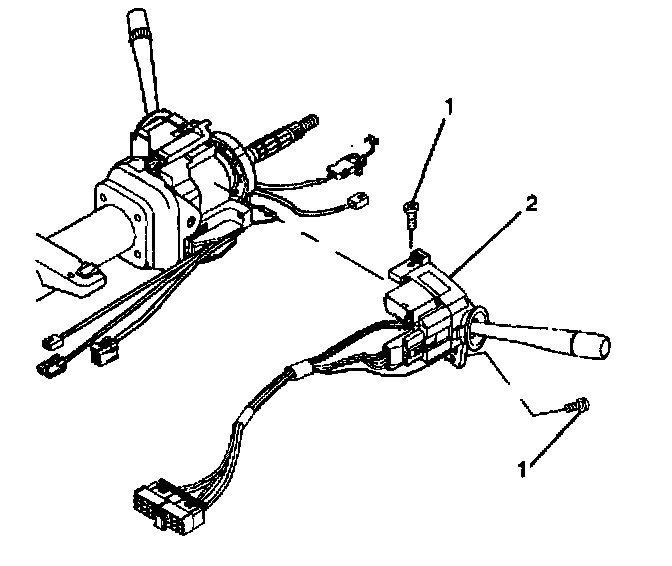 5. Remove the 2 pan head tapping screws (1) from the turn signal and multifunction switch assembly (2).