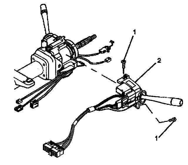 5. Screw the 2 pan head tapping screws (1) into the turn signal and multifunction switch assembly (2).