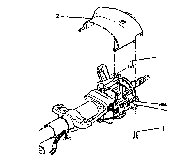 2. Screw the 2 TORX head screws (1) into the upper trim cover (2).