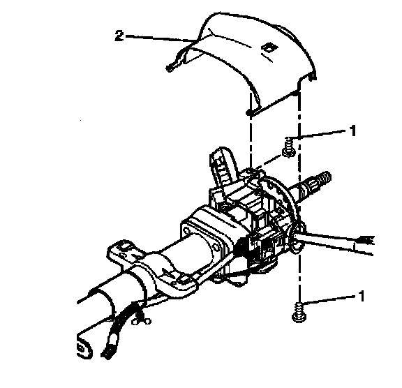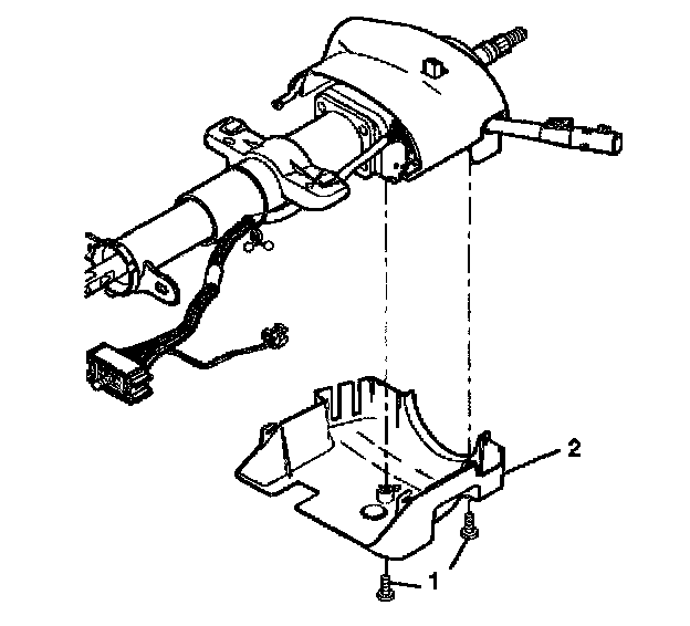 3. Remove the 2 pan head tapping screws: (1) from the lower trim cover (2).