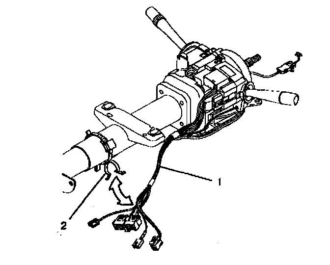 11. Install the wire harness assembly (1) into the wire harness strap(2).